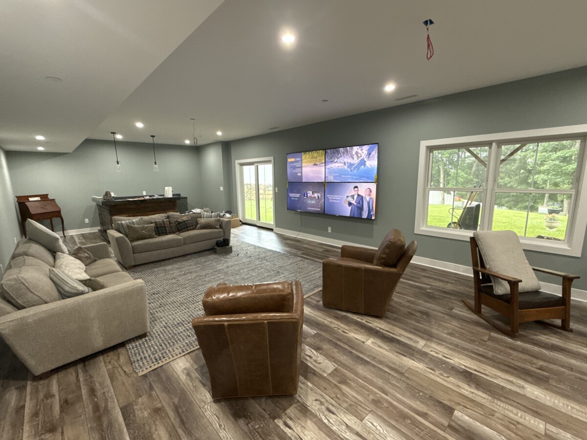 Complete Basement Remodel, Flooring, Recessed Lighting, Bar, Bathroom, Custom Doors