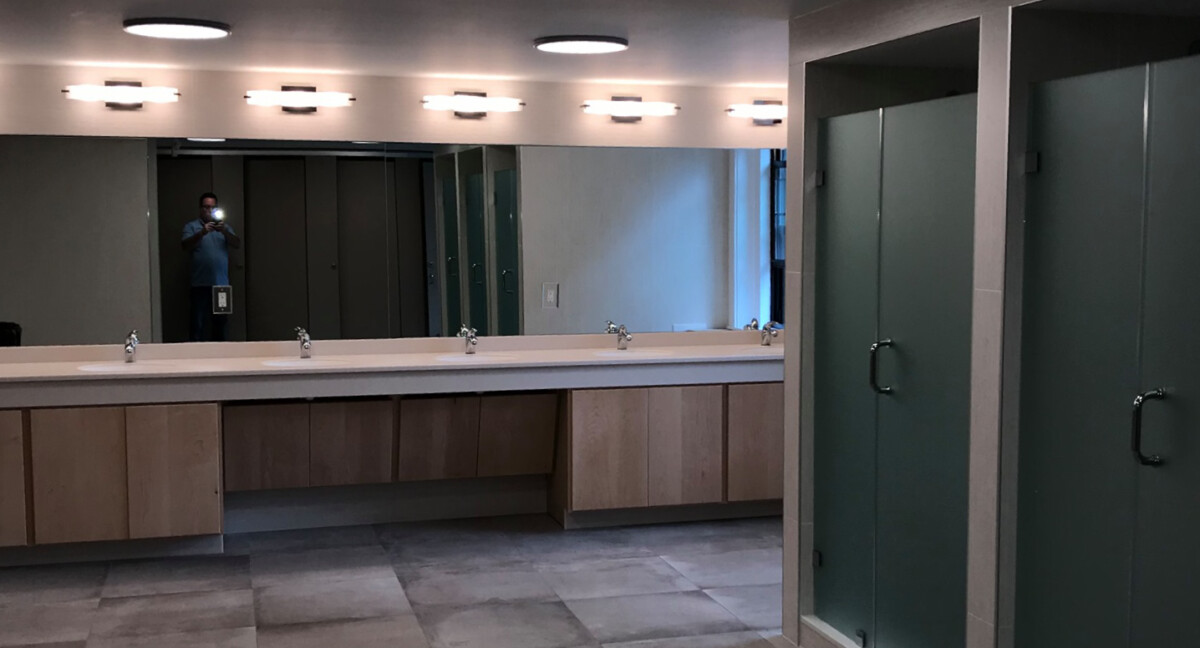 Dobbs Ferry Master School, Dorm Bathroom, Showers, Stalls, Sinks, Tile